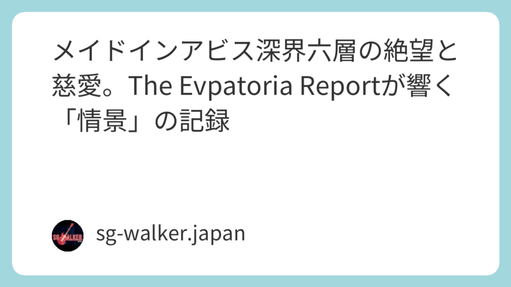 『メイドインアビス』深界六層のヴエコ。彼女の残酷な運命と慈愛に満ちた語りに、ポストロックの深淵「The Evpatoria Report」を重ねる。音楽とアニメの情景が溶け合う瞬間を、ギタリストの視点から綴ります。